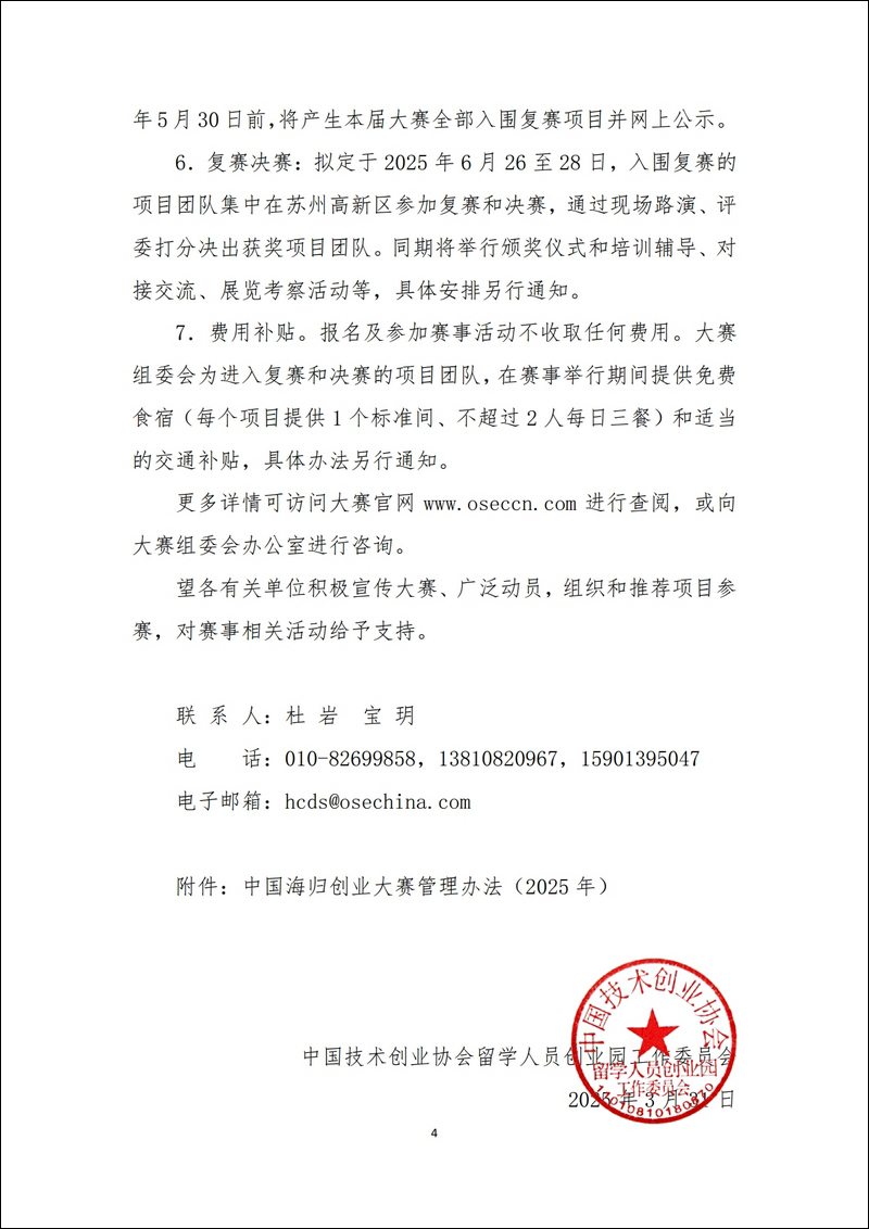 發(fā)文時間:2025-03-31 發(fā)文單位:中國技術(shù)創(chuàng)業(yè)協(xié)會留學(xué)人員創(chuàng)業(yè)園工作委員會 中技創(chuàng)留〔2025〕4號